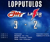 Kolmanteen erään kotijoukkue tuudittautuu jo selvään voittoon ja laskee jalkaa kaasulta. Laser HT aistii tilanteen ja terästää otteitaan hyökkäyspäässä. Kavennusosumalla se nouseekin mukaan voittotaisteluun. Vieraiden kovan rynnistyksen JHT puolustus kuitenkin kestää maalissa pelanneen Fredrik Vaahteran johdolla. Lisäosumia ei enää tarjoilla ja näin makeat kolmepistettä jää Wiimax areenalle.
