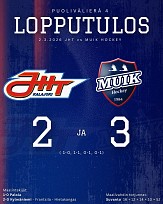 Suomi sarjan puolivälieräsarjan Muik Hockey – JHT neljännen ottelun ja näin koko ottelusarjan ratkaisu nähtiin vasta jatkoajalla ajassa 67.03 Aloituskuvion päätteeksi Raahen lahja Munsalan kiekolle Ville-Pekka Pietilä laukoo jäänuoliaisen ohi JHT maalissa jälleen huippuillan pelanneen Eemil Suvannon. Loppunumerot kirjataan historiankirjoihin 2-3 JA vieraille, erät 1-0, 1-1, 0-1, 0-1