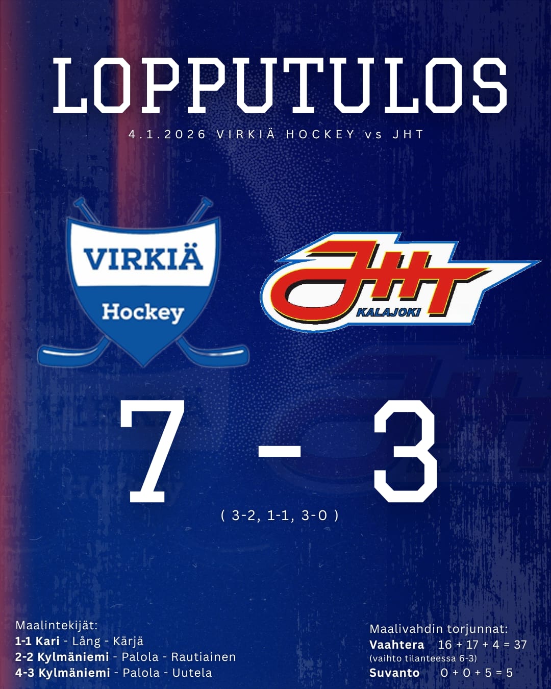 Virkiä viimeisteli tehokkaammin ja piti pisteet Lapualla lukemin 7-3, erät 3-2, 1-1, 3-0